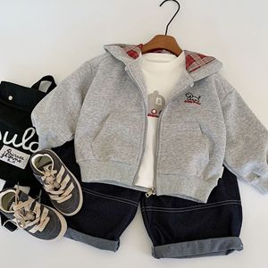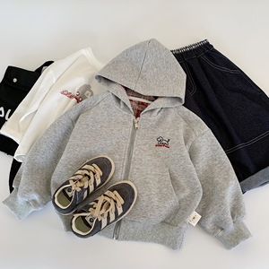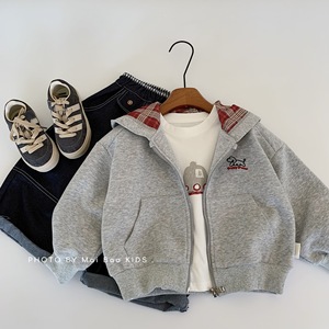麦宝儿童外套2025秋季新款韩版男女童连帽拉链开衫湖州织里童装潮