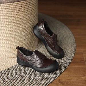 羊皮~法式真皮通勤圆头厚底小皮鞋女气质黑色乐福鞋深口软底单鞋