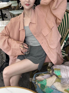 外套女2025新款工装多口袋苎麻天丝翻领风衣休闲宽松上衣C0838