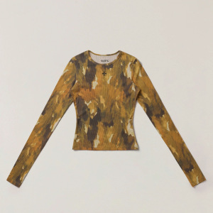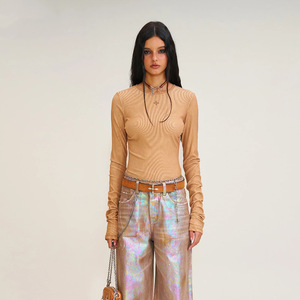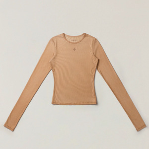 SMFK暴风褪色蚕丝运动长袖上衣圆领修身打底衫T恤女