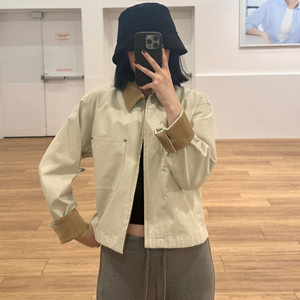 URAZ女装休闲拉链短茄克/外套巴恩风翻领时尚夹克 新款Y479208