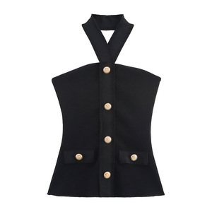 外贸2025塑形弹力挂脖领上衣5584130800弹力喇叭裤5584131800套装