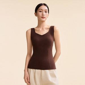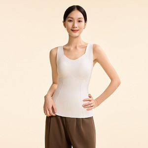 羊毛蚕丝人鱼腰线v领保暖背心女带胸垫大码马甲显瘦可外穿打底衫