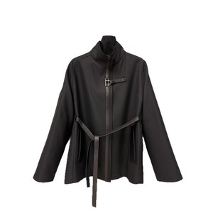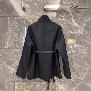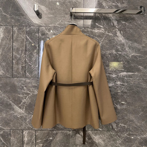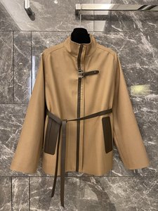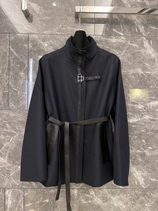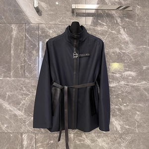 高级感立领风衣外套女25秋季新款设计感韩系英伦风丝羊毛拼真皮