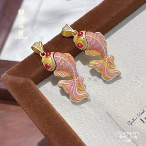 足银9999描金珐琅彩鲤鱼吊坠女高级感轻奢国潮风纯银锁骨挂坠批发
