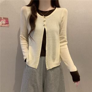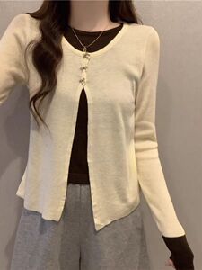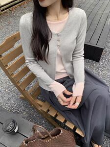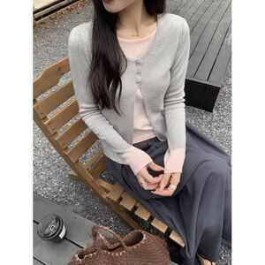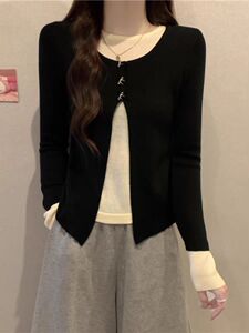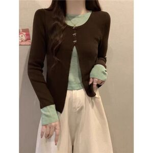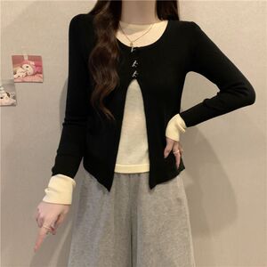 韩版设计感撞色假两件别致减龄针织衫长袖女款秋季百搭气质上衣潮