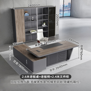 2.6米老板桌+老板椅+2.4米文件柜(木皮铁灰色)【免费送装】