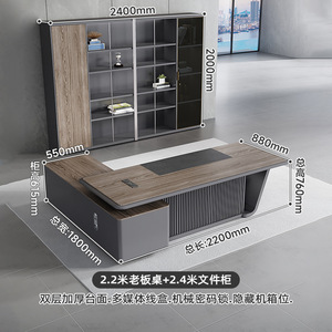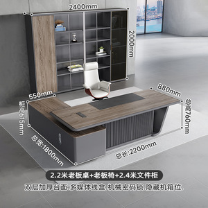 2.2米老板桌+2.4米文件柜(木皮铁灰色)【免费送装】