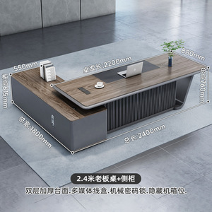 2.4米老板桌+老板椅(木皮铁灰色)【免费送装】