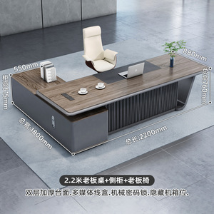 2.2米老板桌+老板椅(木皮铁灰色)【免费送装】