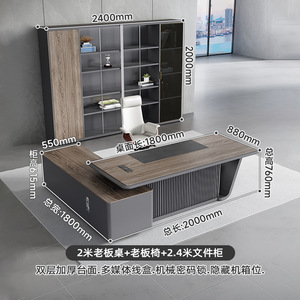 2.0米老板桌+2.4米文件柜(木皮铁灰色)【免费送装】