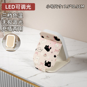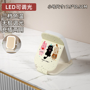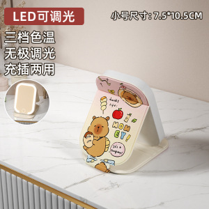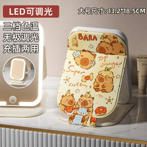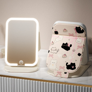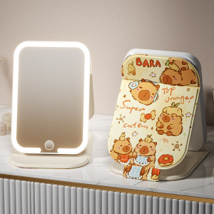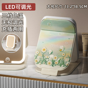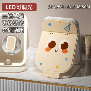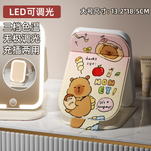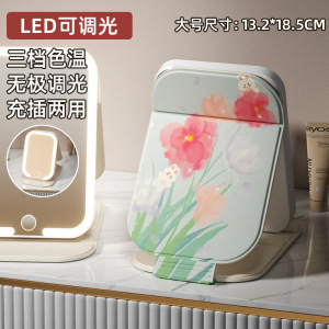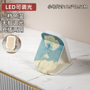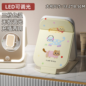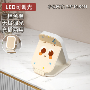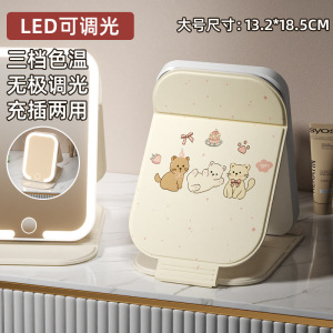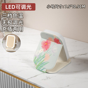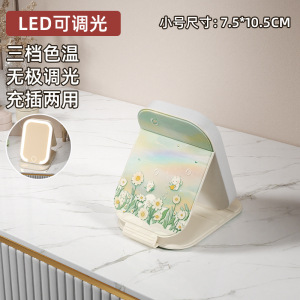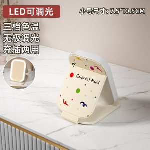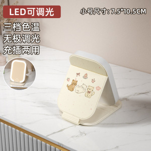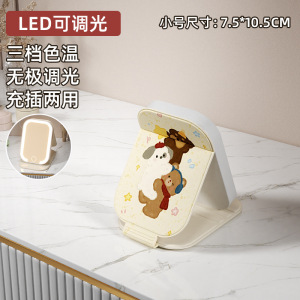 可爱卡通印花LED化妆镜宿舍办公创意梳妆镜三色灯光折叠化妆镜 [