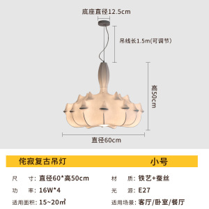 餐厅吊灯蚕丝布艺复古中古风吧台主卧室灯创意高级感极简餐桌吊灯