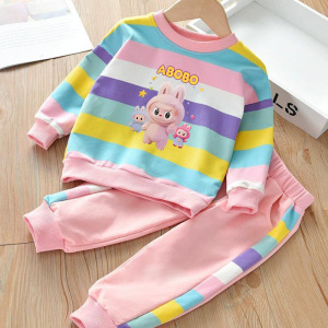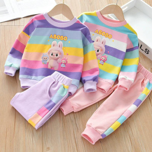 拉布布女童彩虹套装2025新款女宝宝春秋款儿童洋气卫衣裤两件套