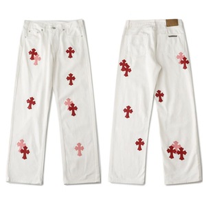 25正确版CH克罗伈十字架贴皮刺绣水洗牛仔裤情侣宽松牛仔批发代发