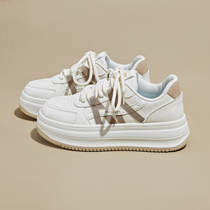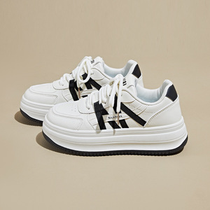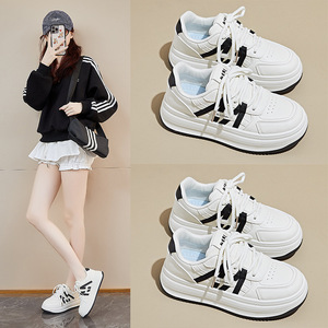 厚底增高小白鞋女2025秋季新款面包鞋松糕百搭牛皮休闲街拍