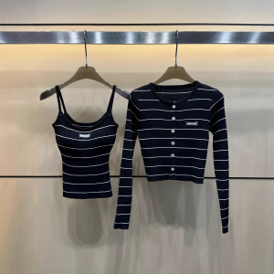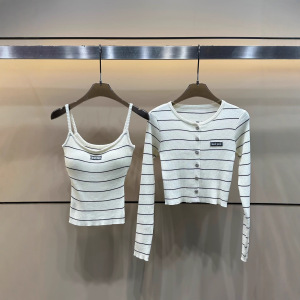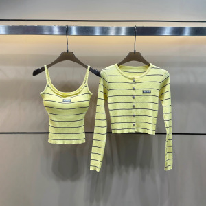 mm家25ss秋冬新款条纹带胸垫背心+开衫两件套套装时尚百搭