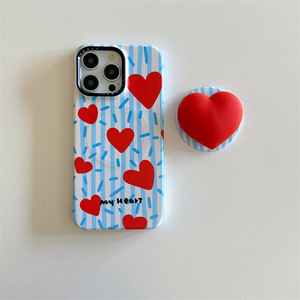 磁吸-蓝白条纹红爱心 壳+蓝条纹圈立体红爱心支架