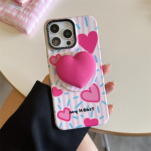 磁吸-粉白条纹粉爱心 壳+立体粉爱心支架