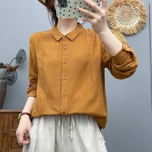 韩版POLO领基础简约衬衣秋装 棉质百搭宽松显瘦叠穿打底衬衫女