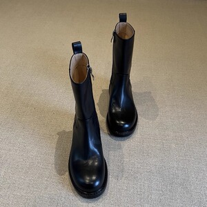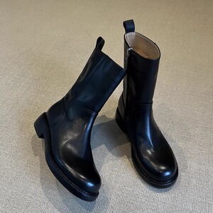 羊皮版~2025复古高级感粗跟马丁靴女秋冬新款低跟短靴女