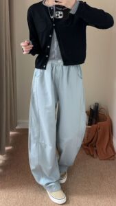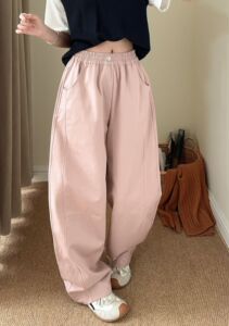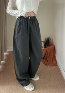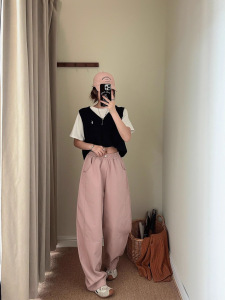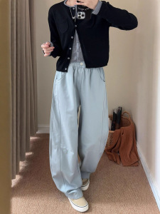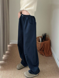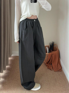 韩版纯色质感拼接弯刀裤女秋季新款口袋高腰百搭休闲宽松显瘦长裤