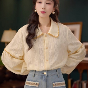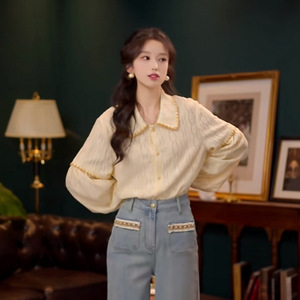 秋野雏菊欧若风长袖衬衫女时尚休闲宽松上衣+马甲