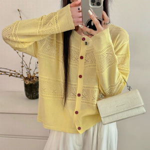 250斤大码女装2025夏季新款镂空圆领长袖针织开衫宽松防晒衫上衣