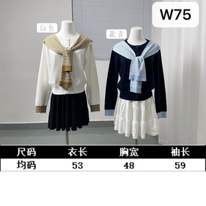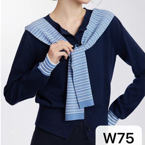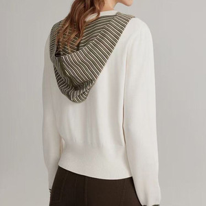 连帽条纹针织开衫假两件披肩上衣女装毛衣外贸跨境高端毛织衫工厂