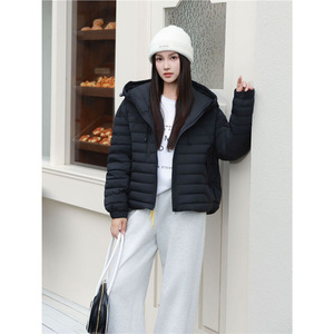韩版90白鸭绒羽绒服女短款2025年新款情侣轻薄排骨连帽外套