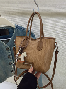 独特小众编织纹包包2025新款秋冬季复古百搭斜挎包女式手提水桶包