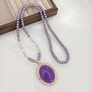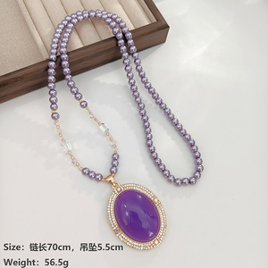紫色椭圆吊坠毛衣链轻奢高级感长款项链紫色项链跨境热卖项饰批发