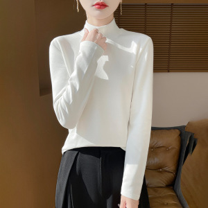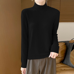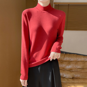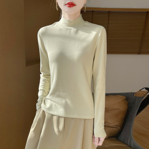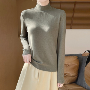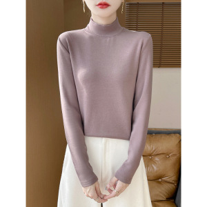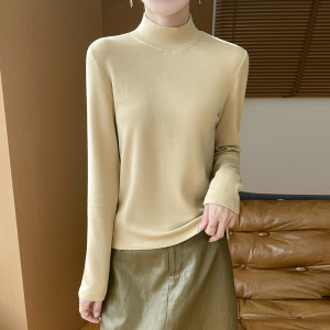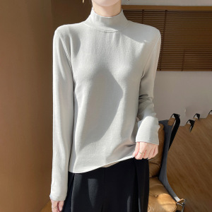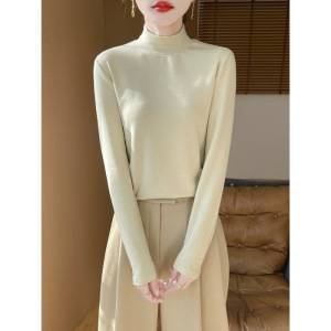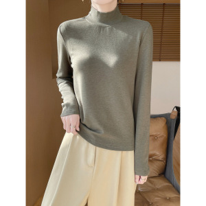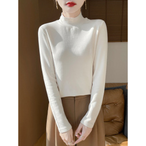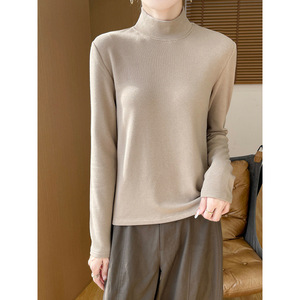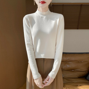 2025年秋冬新款棉线半高领针织衫长袖女加绒保暖纯色打底衫上衣
