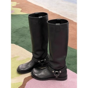 牛皮版~洋气工装风真皮不过膝长靴高筒骑士靴女秋冬新款长筒靴子