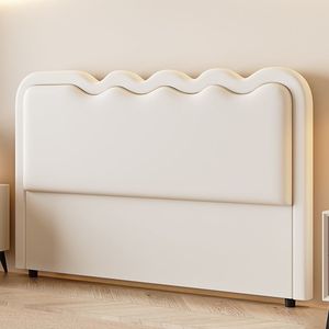 新款法式涟漪波浪实木框架结构落地一体床头软包简约现代靠背