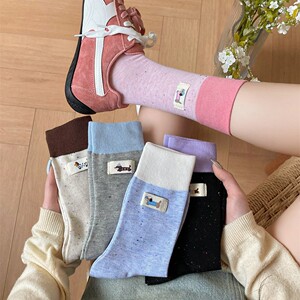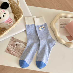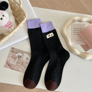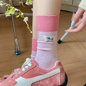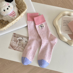 袜子女中筒袜纯棉夏季薄款日系ins潮可爱卡通点子纱腊肠狗堆堆袜
