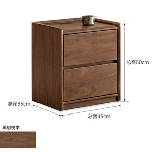 北美黑胡桃木实木床头柜卧室家用床边柜现代简约抽屉式收纳储物柜