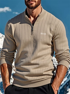 2025秋冬欧码跨境立领男士毛衣半拉链针织衫高品质毛衣LOGO刺绣
