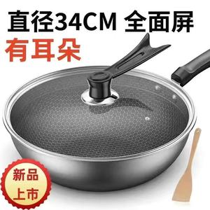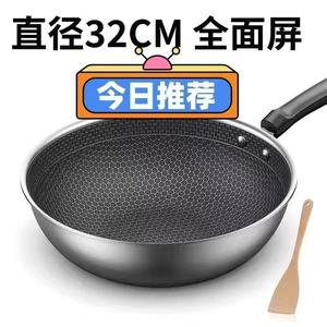 德国不锈钢炒锅家用不粘锅无涂层无油烟炒菜锅电磁炉燃气通用锅