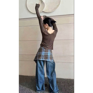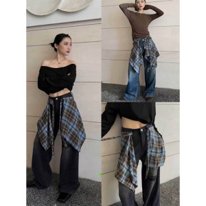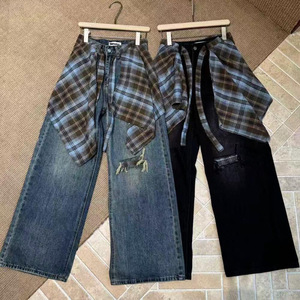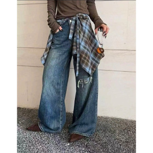 广州十三行2025秋冬新款高腰直筒宽松显瘦牛仔裤设计感破洞拖地裤