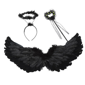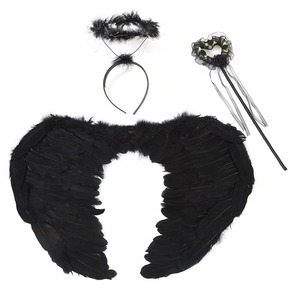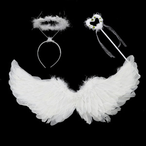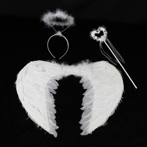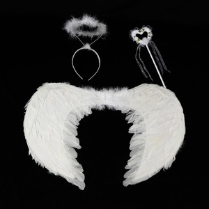 天使装扮羽毛翅膀头饰魔法棒三件套万圣节派对舞台演出服装道具