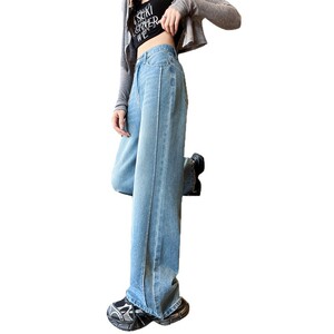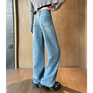 秋季直筒阔腿牛仔裤2025新款宽松浅色显瘦垂感拖地裤子女款A6613