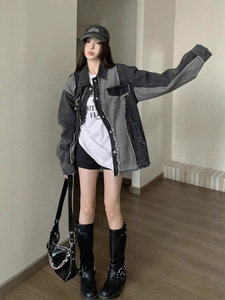大码设计感毛边牛仔外套女宽松2025年新款韩版ins洋气夹克上衣潮