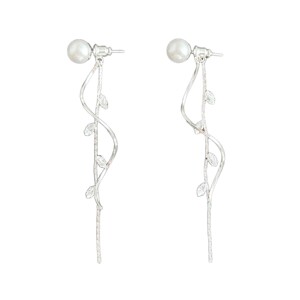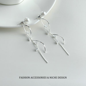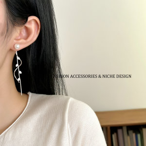 韩系闪锆树叶流苏珍珠耳环女轻奢精致百搭气质小众设计高级感耳钉