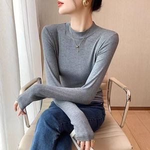 小高领秋装新款打底衫长袖高弹力修身显瘦内搭t恤百搭纯色上衣