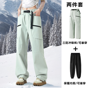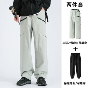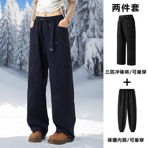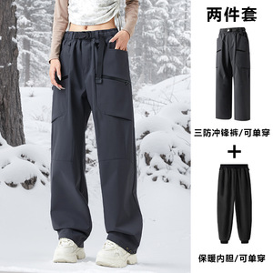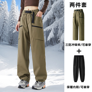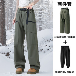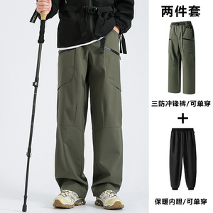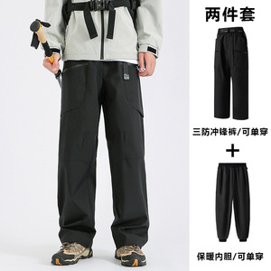 三防滑雪裤男女款春秋冬季户外防风防水工装情侣三合一软壳冲锋裤