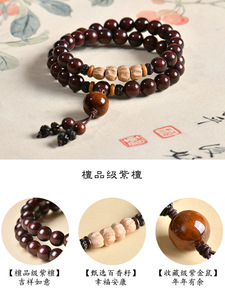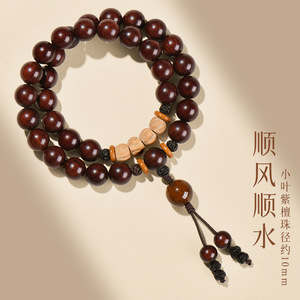 普陀山天然印度小叶紫檀手串女檀香木质文玩双圈佛珠手链生日礼物