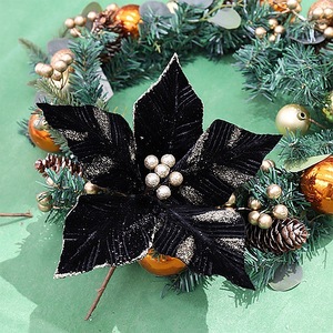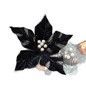2025爆款圣诞花黑色亮片高级绒布假花节日装饰品圣诞树配饰仿真花