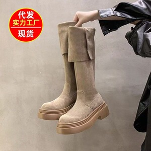 英伦风厚底2025新款秋冬季过膝绒面女款显瘦高筒骑士靴