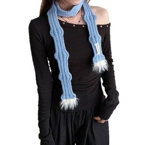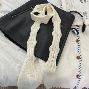 设计款韩版小众细长条围巾女可爱多巴胺纯色腊肠围脖含羊毛装饰潮